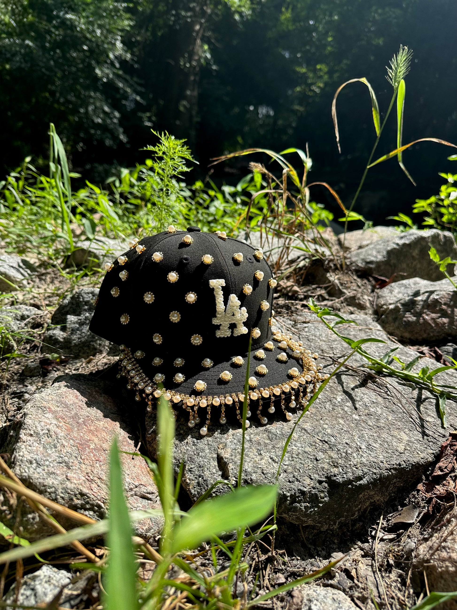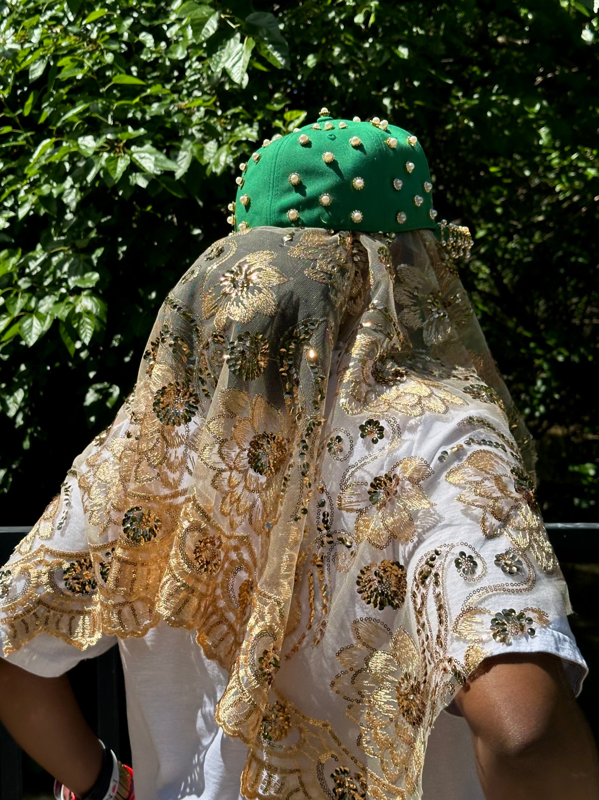 Pearl Rhinestone Fitted Hat + Detachable Head Scarf
